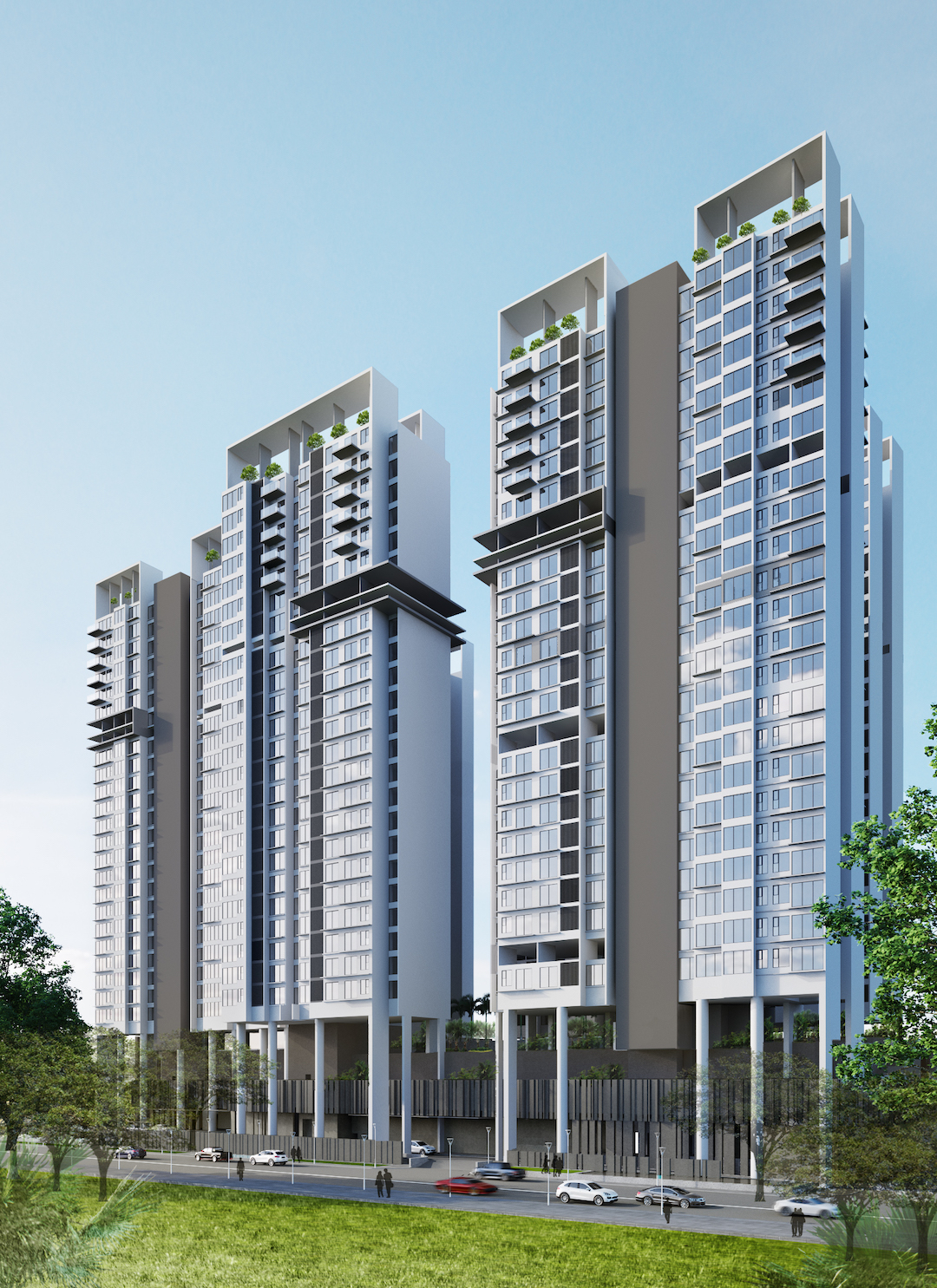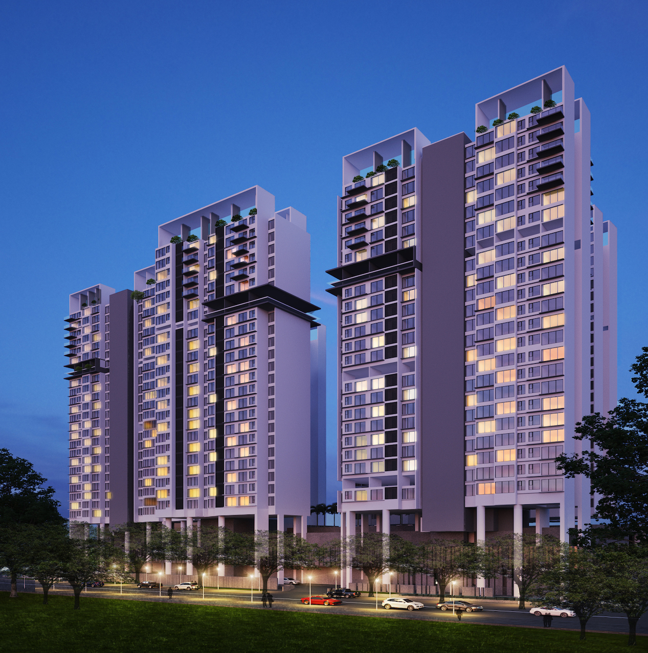 One of the most challenging projects, where in the client required us to develop a large residential development of approx 1 million Sq Ft on the partly constructed commercial building base. The innovation was to convert the commercial column grid that was commensurate to house residential units. The apartment matrix of studios, 1 & 2 BHK units made the task more challenging. The final designs resulted in a closely knit residential community connected by a large landscaped podium. The project was executed in collaboration with Design Architects - Andy Fisher Workshop, Singapore